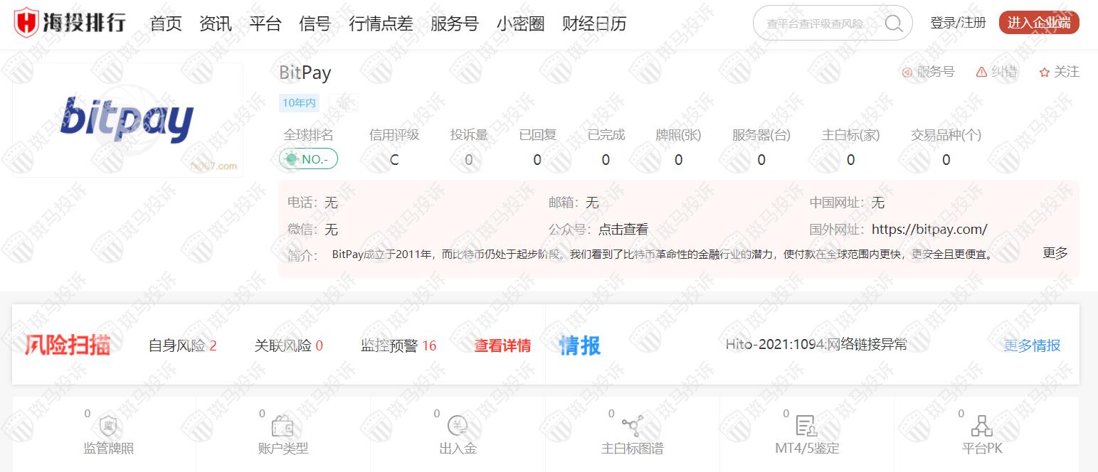 二、据海投排行上的BitPay平台信息: