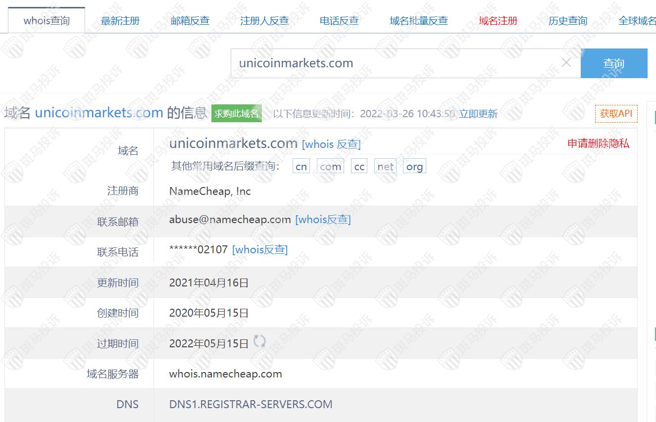 主白标关系显示,Unicoin Markets平台和经营异常的平台Kerford平台是一家公司,从他们的服务器地址,网站的模板来看,都可以看出来相似的地方。