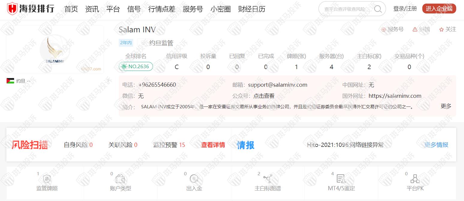 二、据海投排行上的Salam INV平台信息: