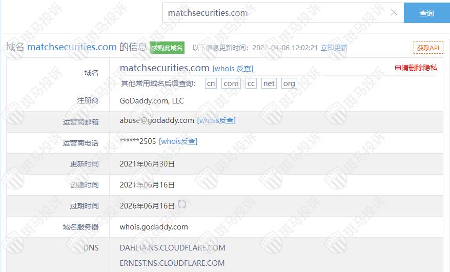 主白标关系显示,Match Securities平台和1家平台存在关联。