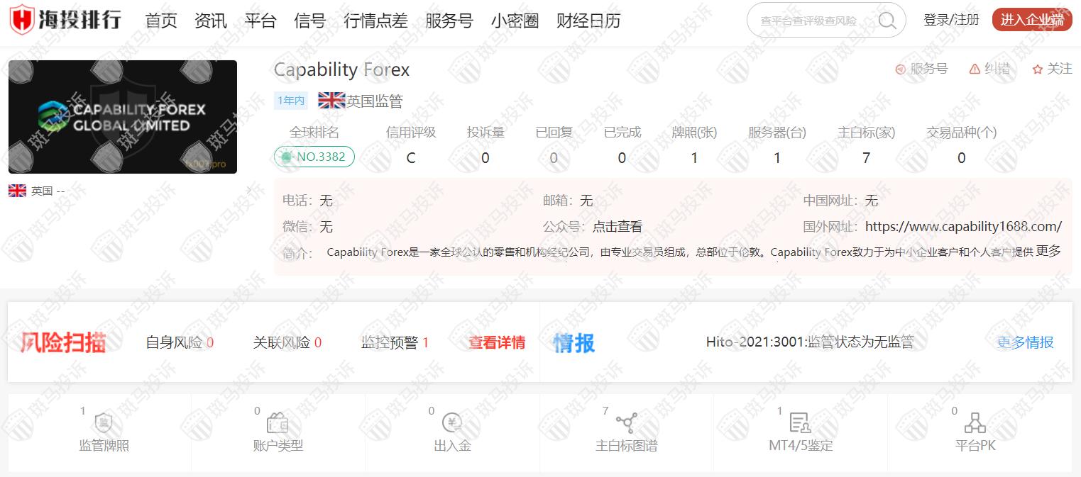 通过上述对于“Capability Forex外汇平台怎么样”的相关介绍,相信大家对于“Capability Forex外汇平台怎么样”已经有了一定了解。想要获得更多Capability Forex外汇平台信息以及全球外汇交易商的评级查询服务,请前往海投排行APP查询!