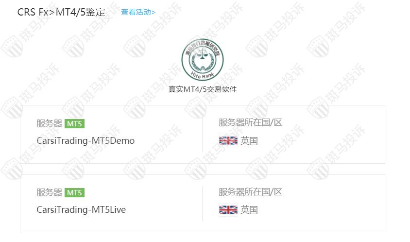 CRS Fx平台服务器有2台,在英国。