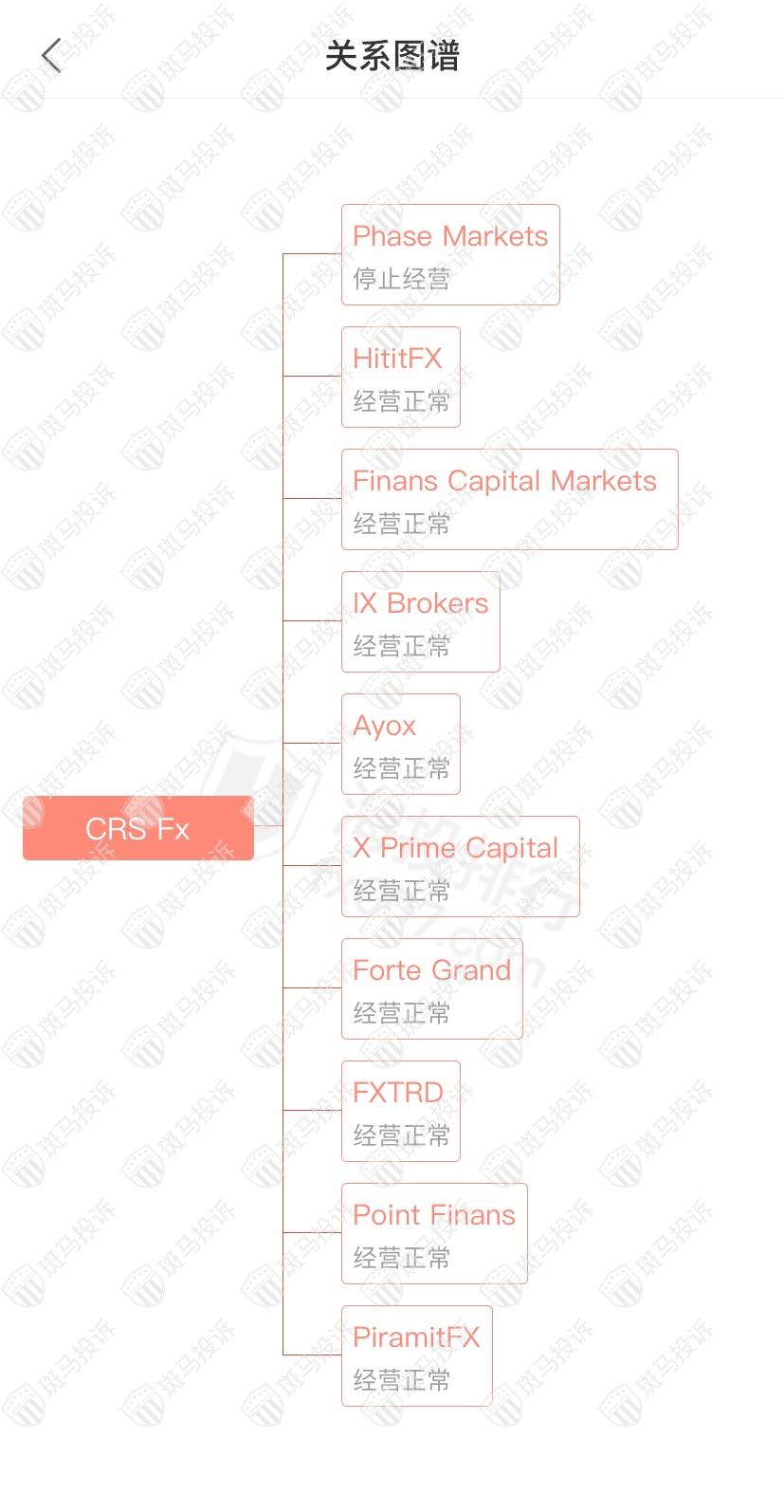主白标关系显示CRS Fx平台和10家平台是一家公司,从他们的服务器地址,网站的模板来看,都可以看出来相似的地方。其中Phase Markets停止经营。