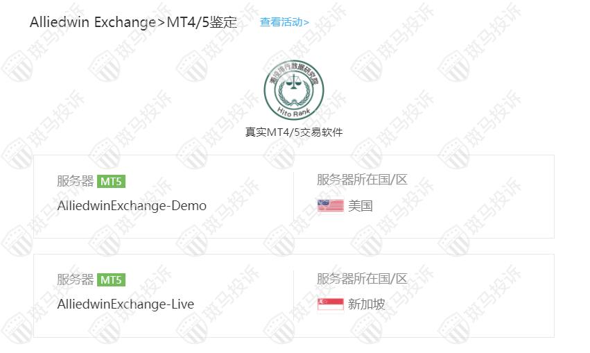 Alliedwin Exchange平台服务器有2台,一台在美国,一台在新加坡。