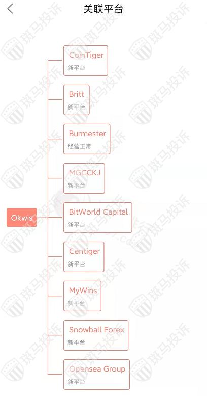 主白标关系显示,Okwis平台目前和9家平台存在关联,目前这些平台经营正常。