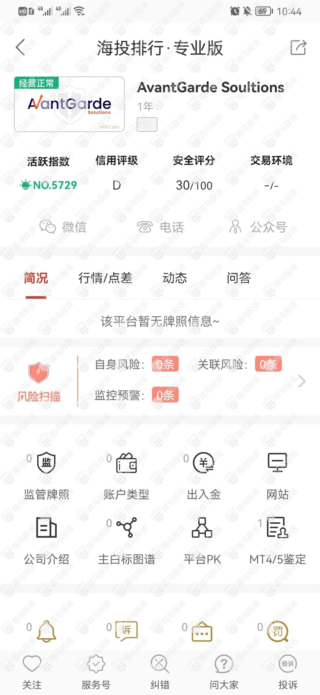AvantGarde Soultions平台目前在斑马投诉未收到相关投诉。