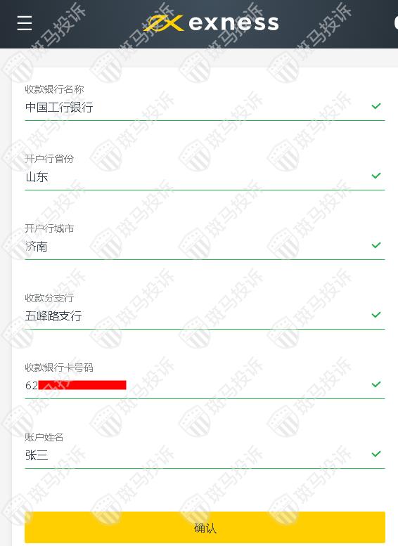 5、选择或输入银行名称,输入你的银行卡户头信息。收款姓名必须和注册资料姓名相同,支持中文填写。填错资料,订单处理时会失效,届时就需要重新提交新的正确的提款单。像中行、建行、工行、农行这样的大行,银行处理转账的速度还快一些。