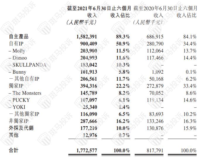 此前,POP MART依靠Moly和Dimoo,但即使引入了新的IP,也依然难以超越。但根据最新的财报显示,POP MART新推出的SKULLPANDA受到了市场的极大喜爱,占其自身IP收入的10.3%,与前两大IP的占比相差不大。
