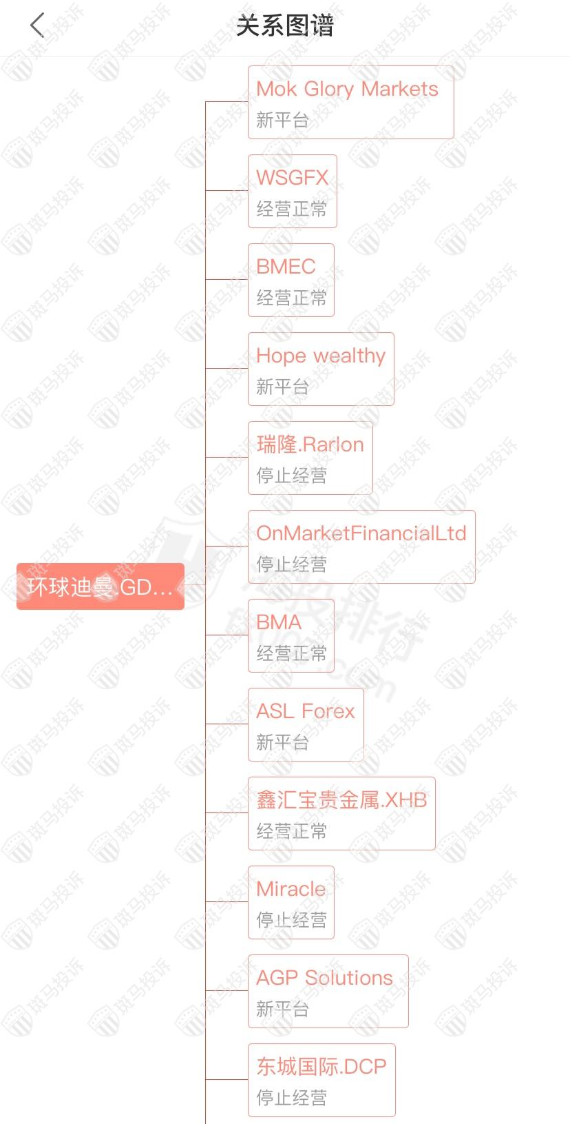 主白标关系显示环球迪曼平台和21家平台是一家公司,从他们的服务器地址,网站的模板来看,都可以看出来相似的地方。其中瑞隆.Rarlon、onMarketFinancialLtd、Miracle停止经营;PNP Markets经营异常。