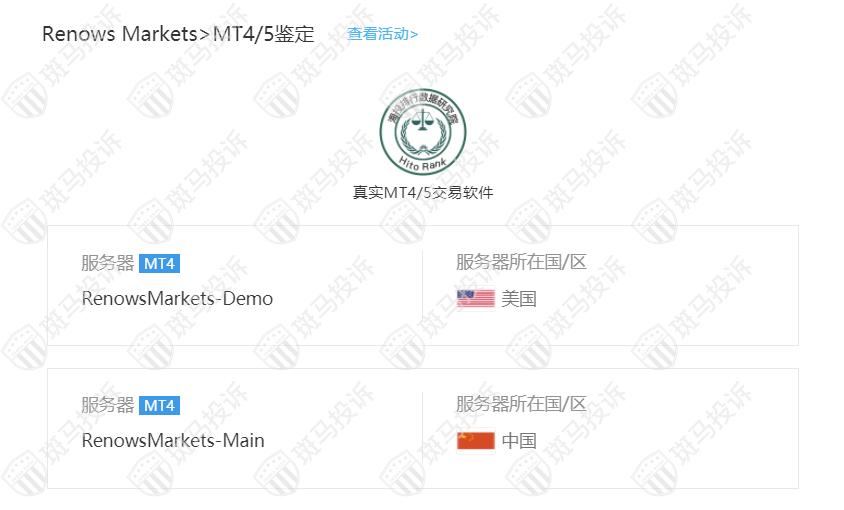 Renows Markets平台服务器有2台,在美国,一台在中国。