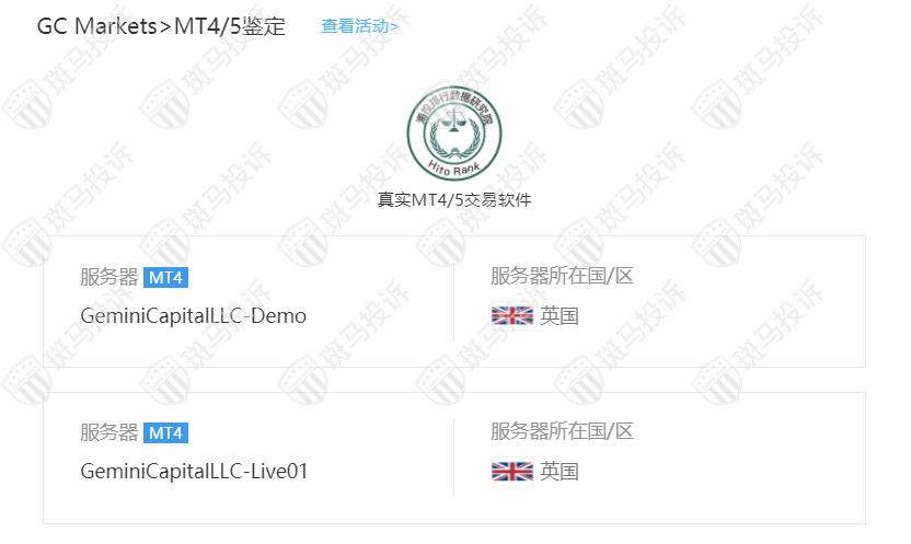 GC Markets平台服务器有2台,在英国。