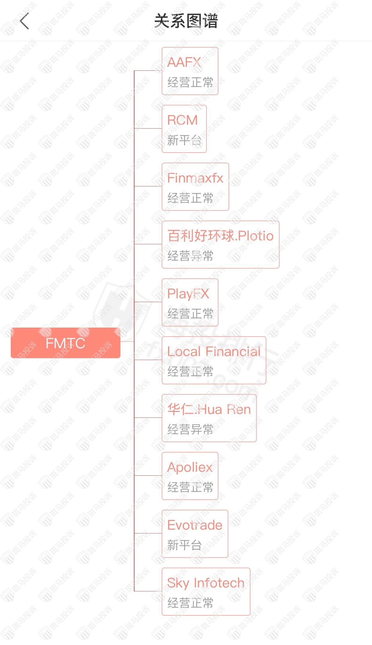 主白标关系显示,FMTC平台和10家平台存在关联,其中2家出现经营异常的情况。