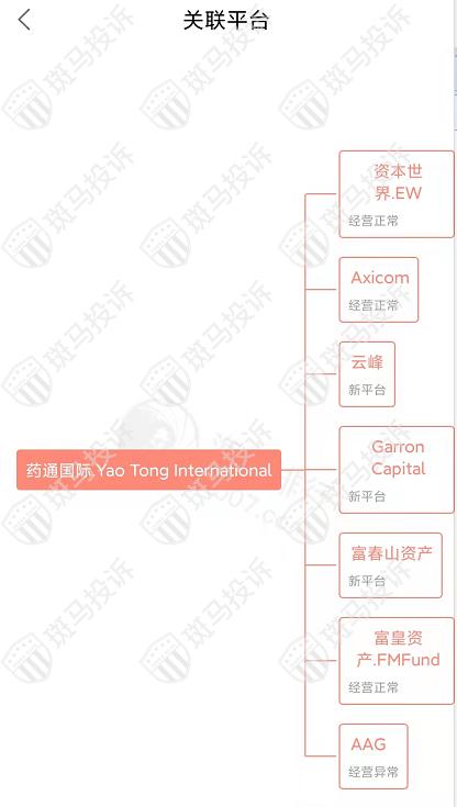 主白标关系显示,Yao Tong International药通国际平台目前和7家平台存在关联,其中AAG平台经营异常。