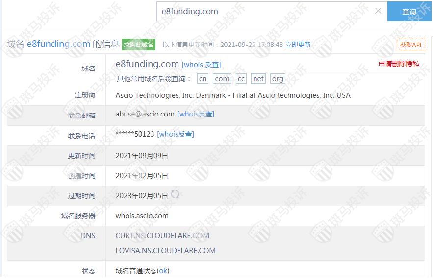 E8 Funding平台服务器有2台,在美国。