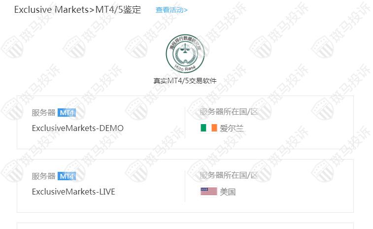 Exclusive Markets平台服务器有5台,1台在英国,1台在爱尔兰,3台美国。
