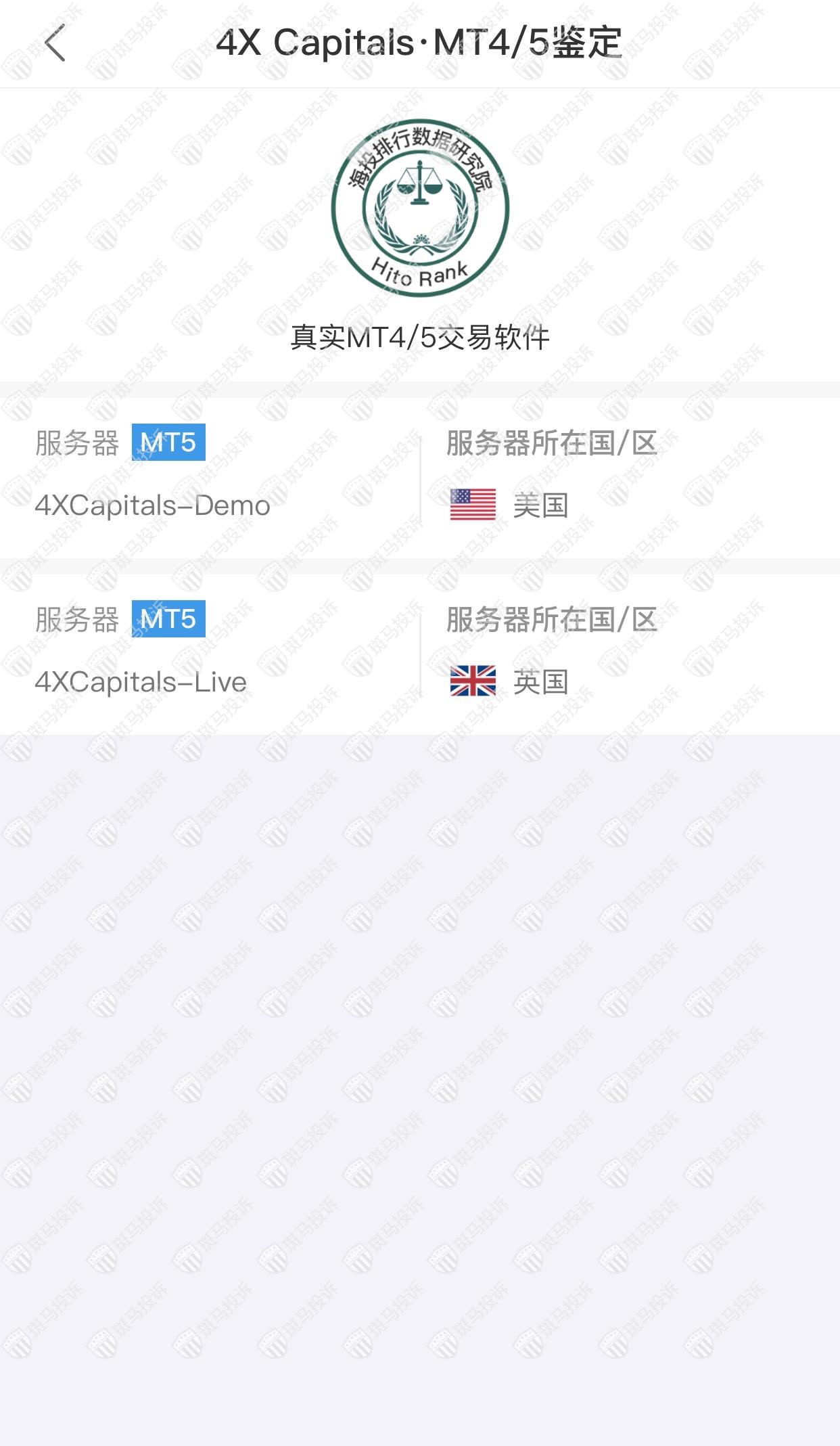 4X Capitals平台服务器有2台,在英国、美国。
