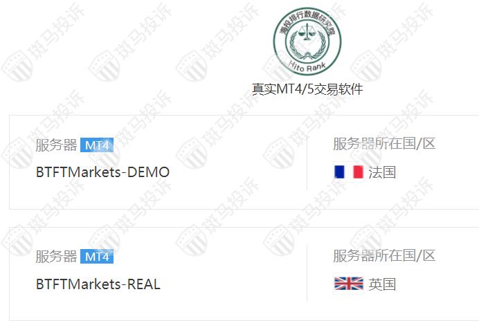BTFT Markets平台服务器有2台,分别在法国和英国。
