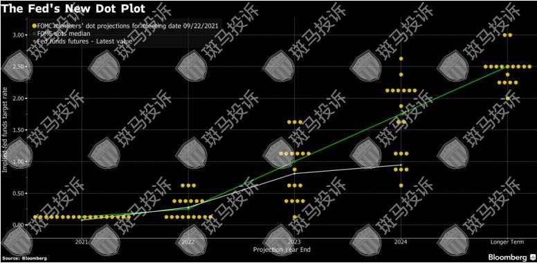 点阵图显示,FOMC 9名委员认为2022年有必要加息一次,比6月份增加两位,导致美联储大部分委员都支持2022年将加息一次,比6月时2023年底前加息的时间表更加鹰派。