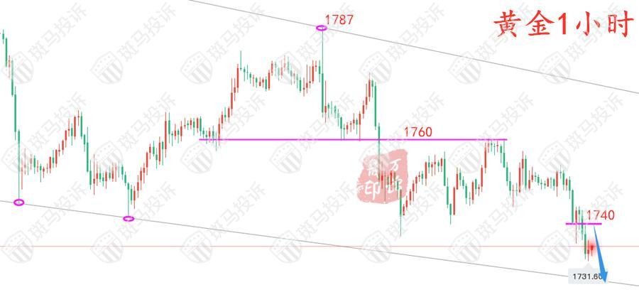 如果欧洲市场弱势地位下降,那么美国市场前后反抽将继续为空,美国市场将出现加速下跌。需要注意的是:疲软的市场不要期望反弹太大;如果反弹幅度过大,就会造成震荡。所以晚间黄金关注盘中下跌反弹的382压力水平,直接在1740附近空,止损1745.5,目标1730-1725,破位1720。