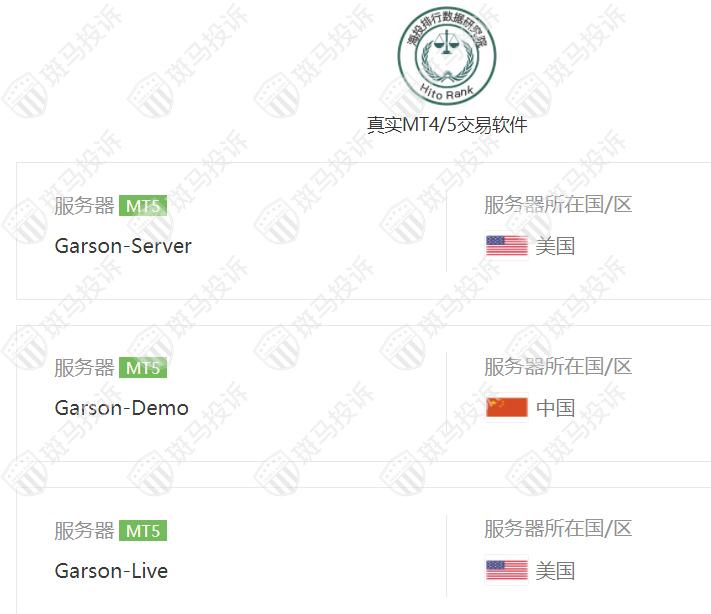 Garson forex平台服务器有3台,2台在美国,1台在中国。