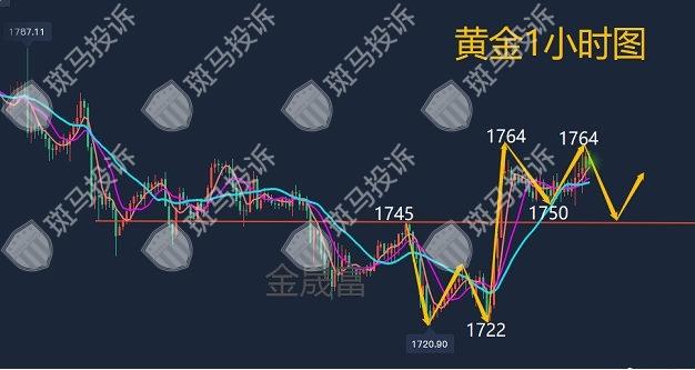 从盘面上看,日线k线收出光头锤线,4小时后在布林带中轨触底后,大阳线再次高高竖起,天空充满油,彻底突破并稳住趋势线,压制顶部。所以,今天的黄金操作很简单,有很多回撤,但不同的只是点位。