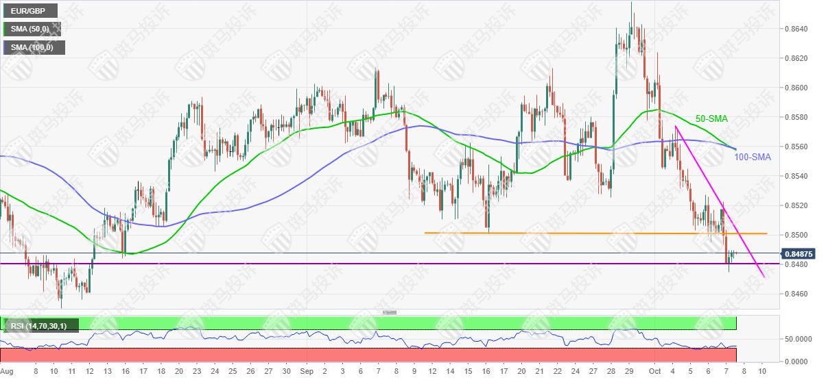 与此同时,若回调,汇价将再度测试接近0.8480的两个月支撑线,然后为8月低点0.8450。