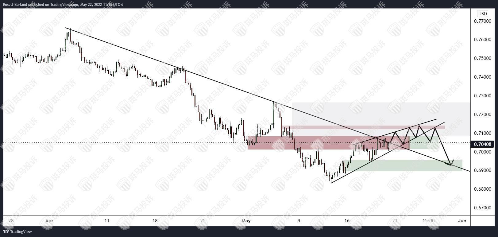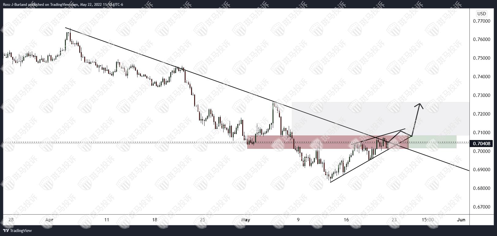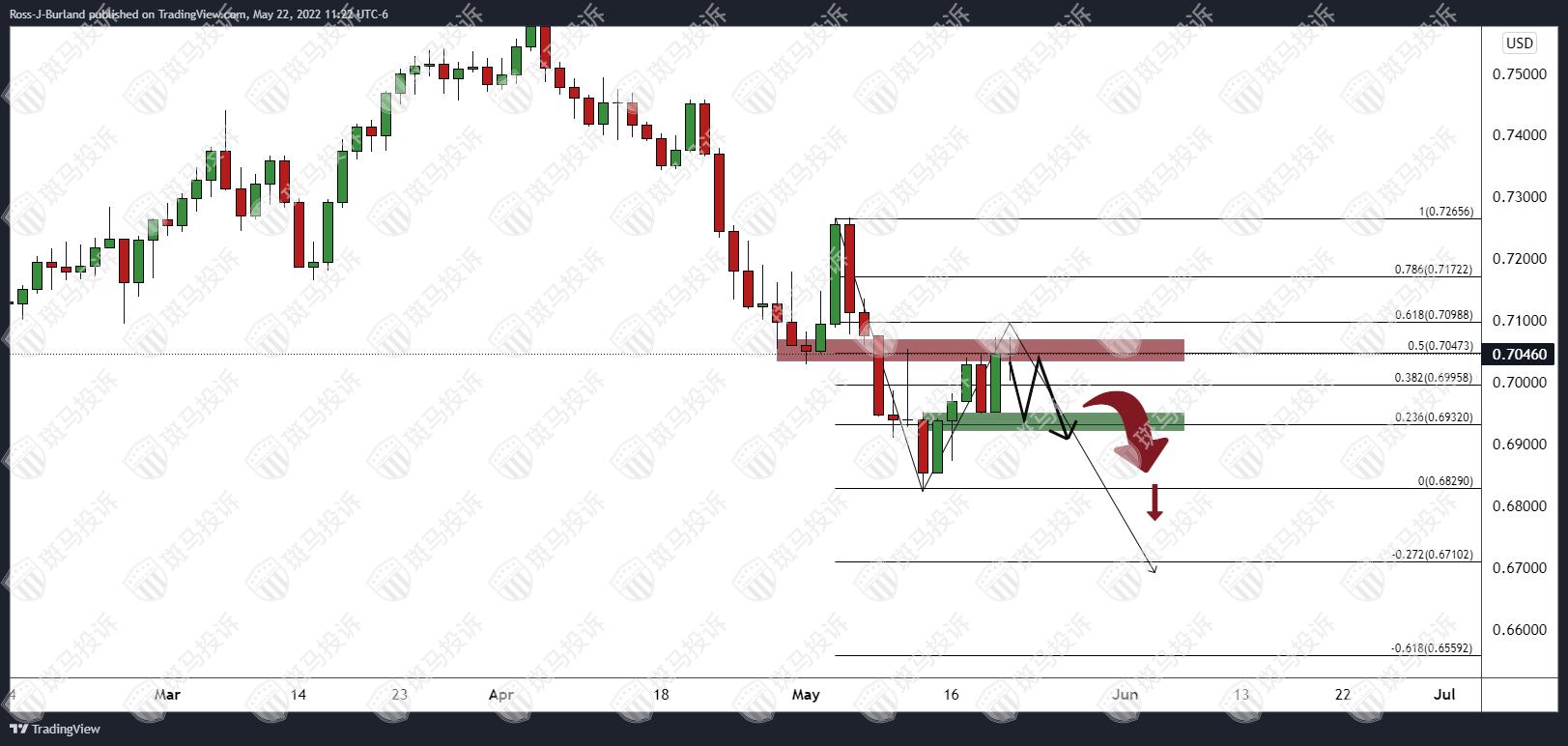 澳元兑美元日图正测试关键阻力位。
