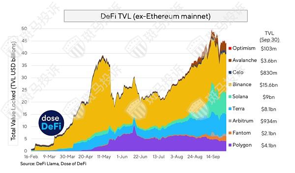 上图:2021年以来,除以太坊之外的其他网络中的DeFi总锁仓价值(TVL)增长趋势。图源:DeFi Llama