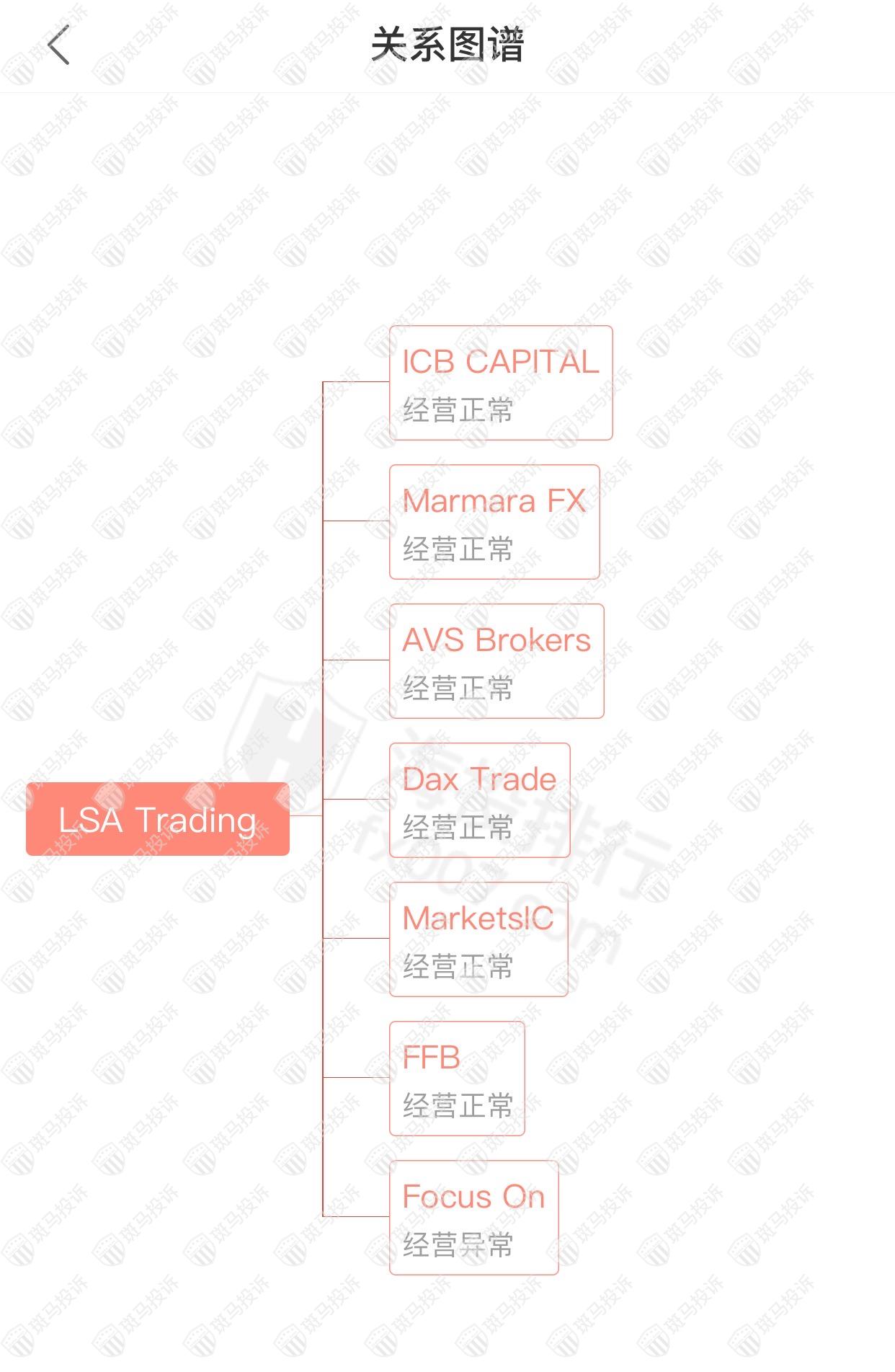 主白标关系显示,LSA Trading平台和6家平台存在关联,其中一家出现经营异常的情况。
