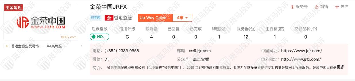 对此,斑马君在海投排行上对该平台进行查询,该平台在海投排行上排名比较低,只有一张香港牌照,目前有4个投诉,被标注为出金延迟的问题平台。对于这样平台,如果能安全出金,就已经很不错了。
