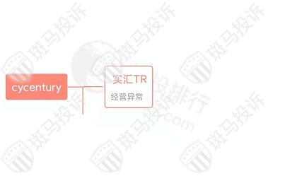 主白标关系显示,cycentury平台和1家平台(实汇TR)存在关联,目前该平台经营异常。