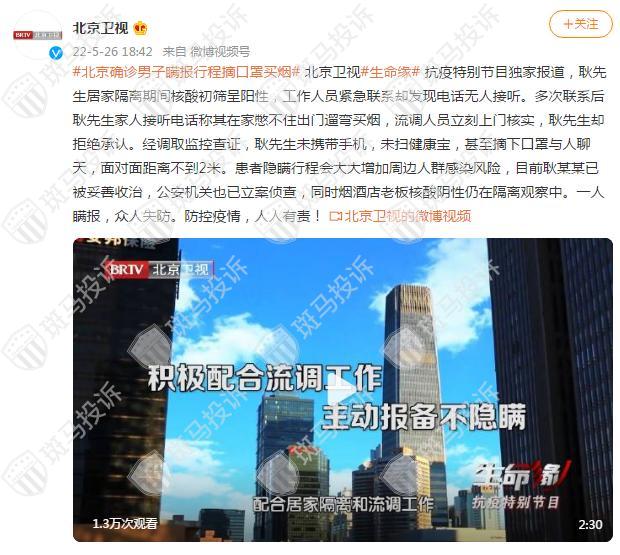 斑马投诉通过北京卫视《生命缘》抗疫特别节目了解到,北京一市民耿先生居家隔离期间核酸初筛呈阳性,工作人员紧急联系却发现电话无人接听。多次联系后耿先生家人接听电话称其在家憋不住出门遛弯买烟,流调人员立刻上门核实,耿先生却拒绝承认。