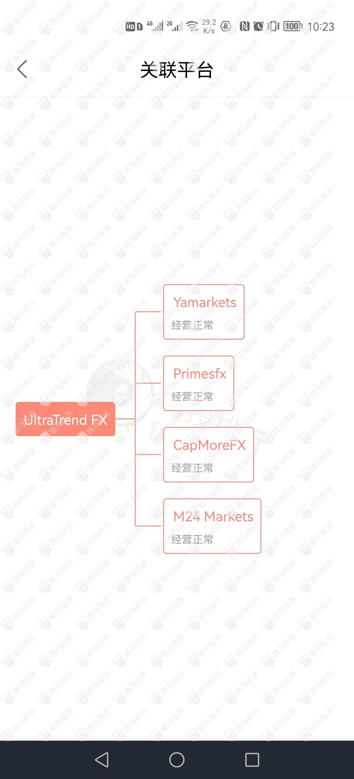 主白标关系显示,UltraTrend FX平台与4家平台存在关联性。和其中M24 Markets平台是一家公司,从他们的服务器地址,网站的模板来看,都可以看出来相似的地方。
