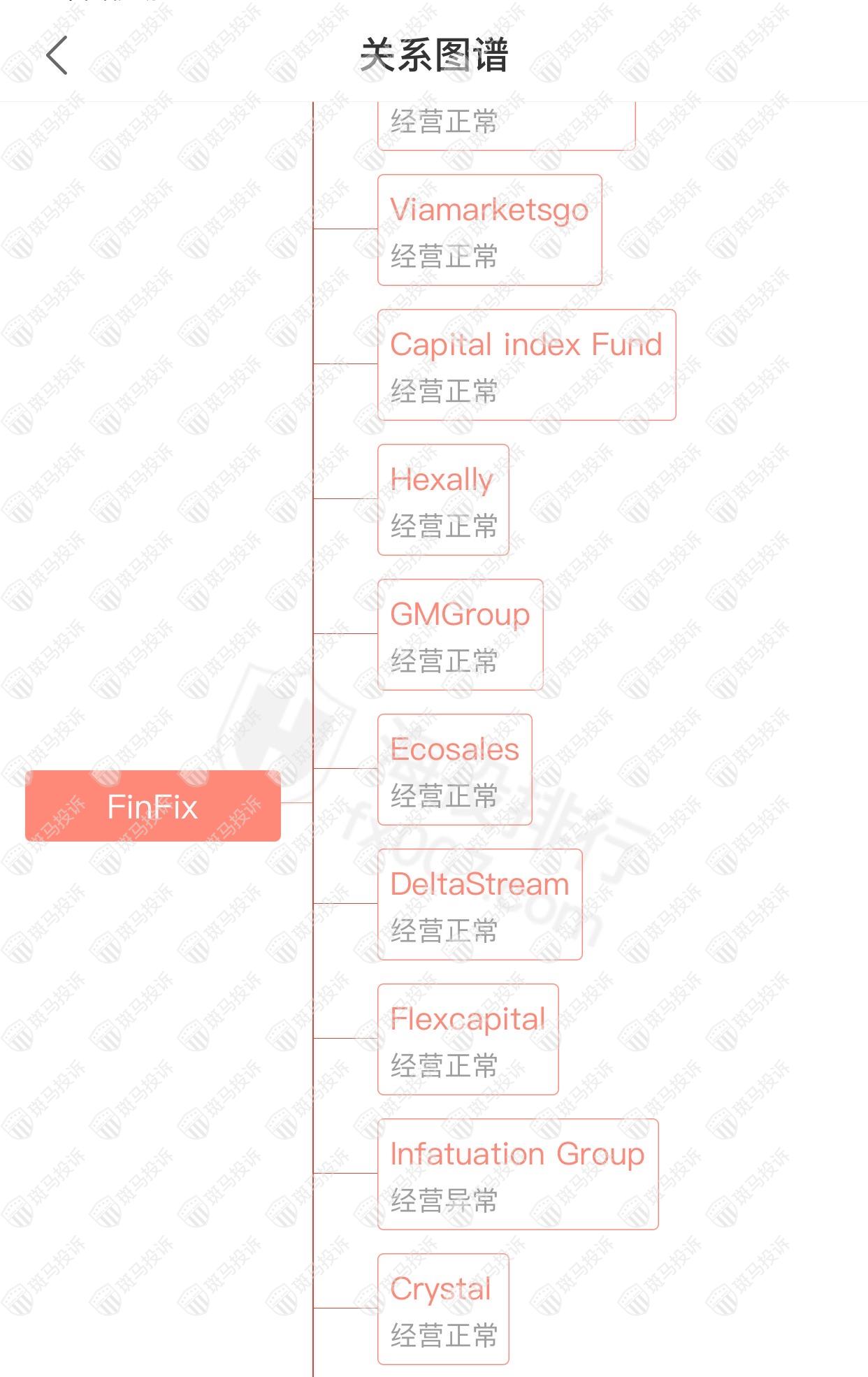 主白标关系显示,FinFix平台和16家平台存在关联,其中一家出现经营异常的情况。