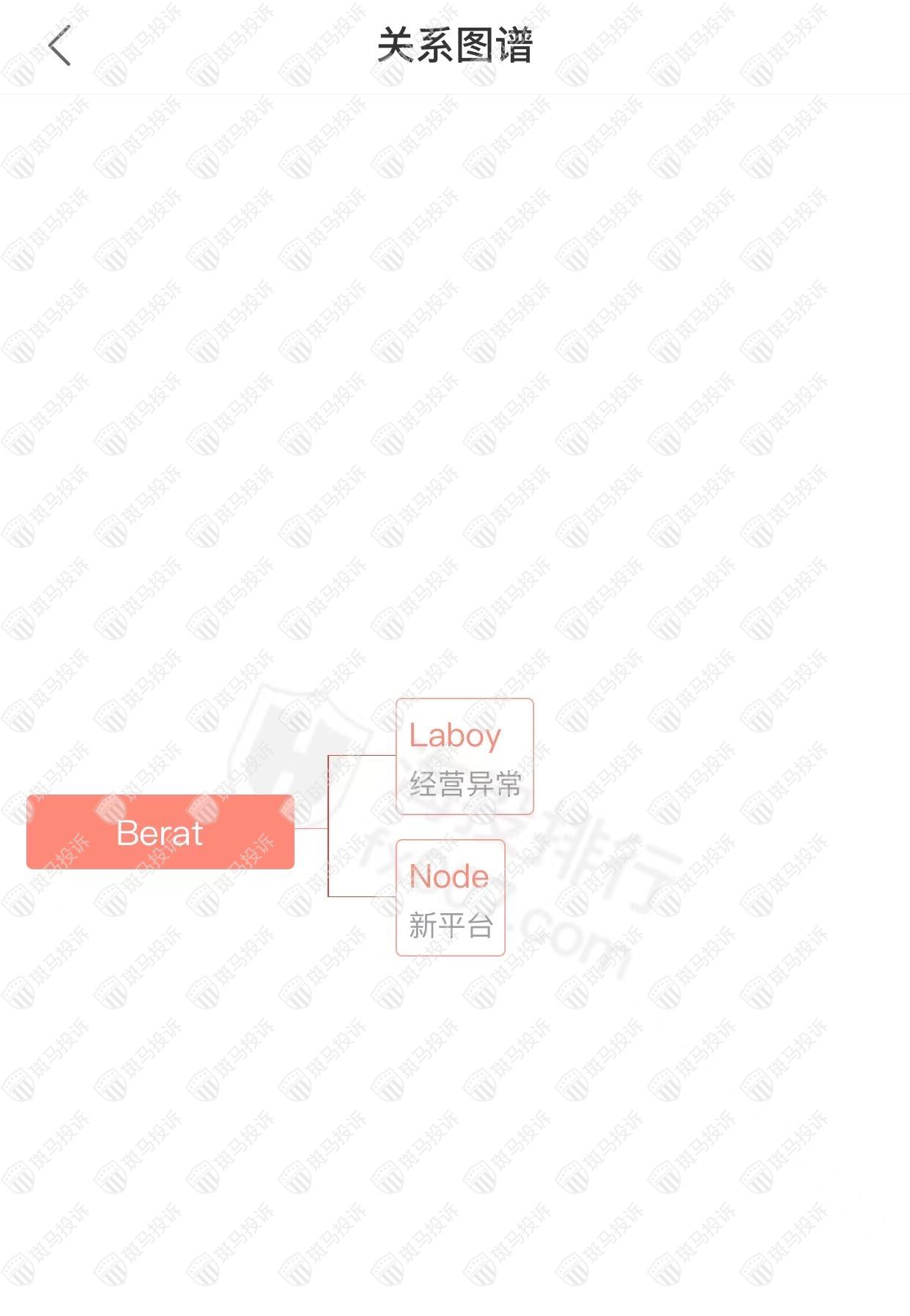 主白标关系显示,Berat平台和2家平台存在关联,其中一家出现经营异常的情况。