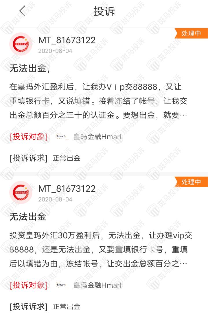 IdolFX的关联平台皇玛金融Hmarl平台目前在斑马投诉已收到7条投诉。