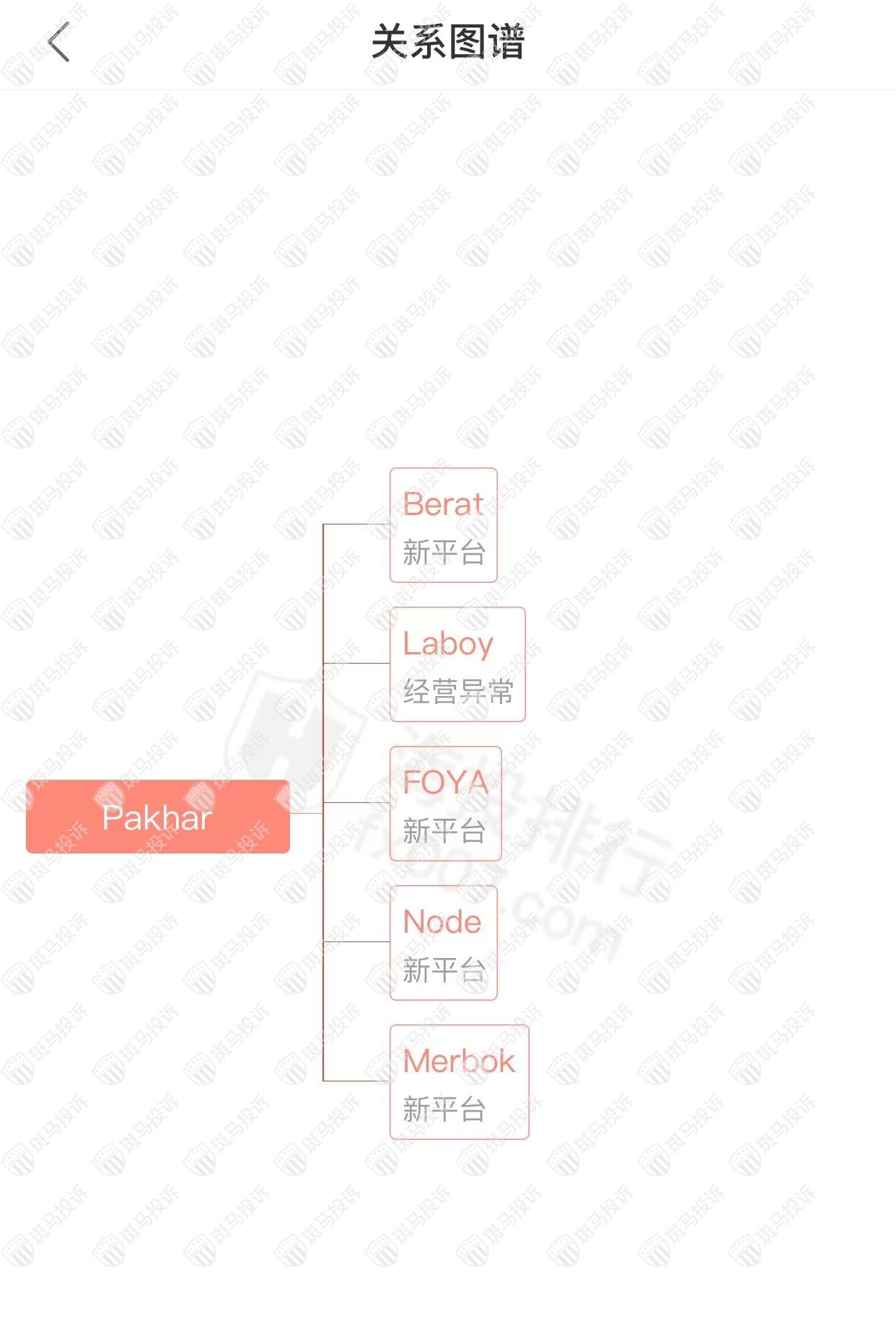 主白标关系显示,Pakhar平台和5家平台存在关联,其中一家出现经营异常的情况。