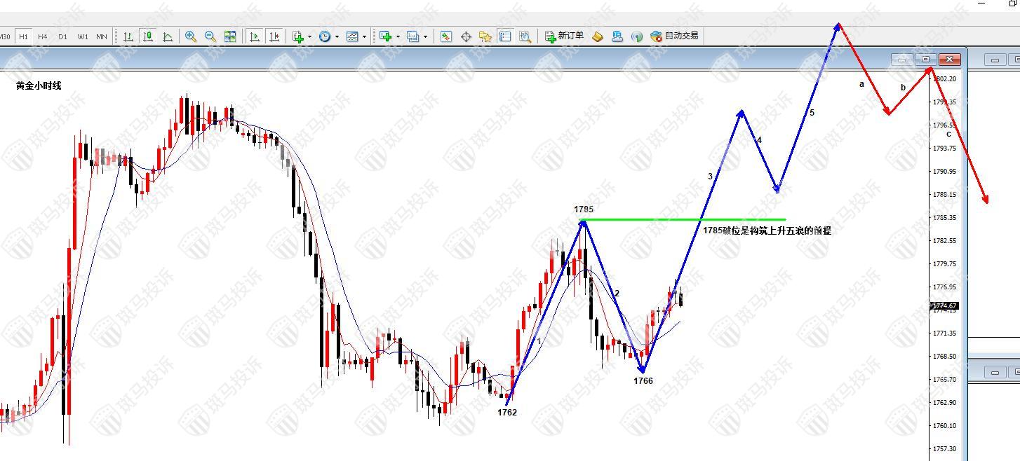 其次,1785年破了,有意思。波浪推演可能会重新出现,看看下面的小时图。