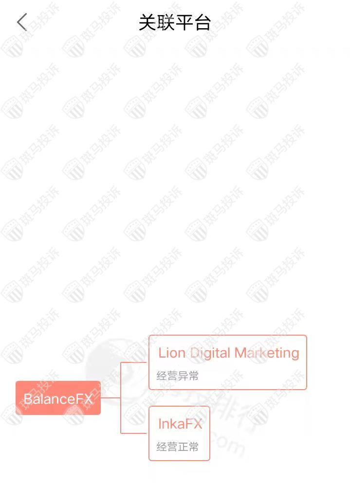 主白标关系显示,BalanceFX平台和2家平台存在关联,其中一家关联平台存在经营异常。
