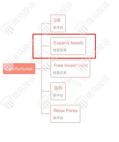 主白标关系显示,Carefortunes平台目前和5家平台存在关联,其中Expand Assets平台经营异常。