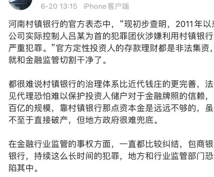 最近发生在河南村镇银行储户无法取款且被红码的事件,让老百姓不得不担心自己钱袋子的安全,特别是存放在村镇银行的钱,还是自己的钱吗?