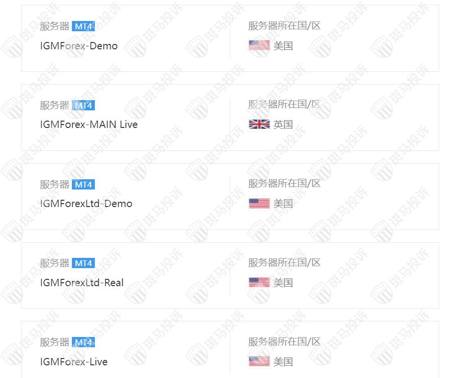 IGM FX平台服务器有5台,4台在美国,1台在英国。
