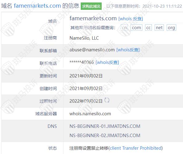 这家平台叫Fame Markets,成立于2021年,全球排名2185名,目前无监管,但是没有外汇牌照,不能做外汇保证金交易,风险扫描显示1条风险,投资者资金安全无保障。