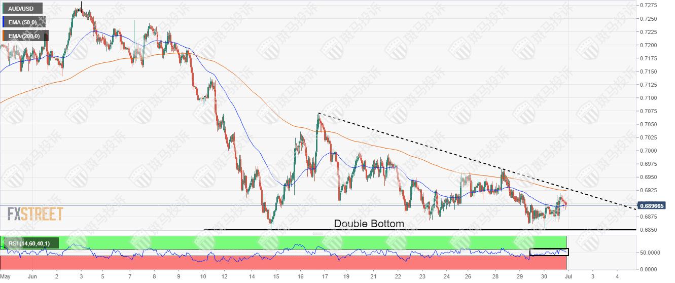 澳元/美元构筑双底形态,预示后市将出现看涨反转。