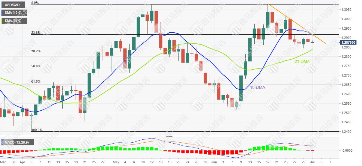 然而,21日均线1.2837成为美元/加元短线支撑,然后是周线低点1.2820附近。