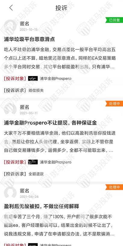 今天想给大家爆料一家平台——Prospero浦华金融,这家平台最近因为恶意滑点问题被用户投诉,大家要注意这家平台最近的服务质量和交易环境。
