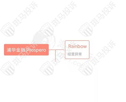 主白标关系显示,Prospero浦华金融平台和1家平台(Rainbow)相关联,目前这家平台经营异常。