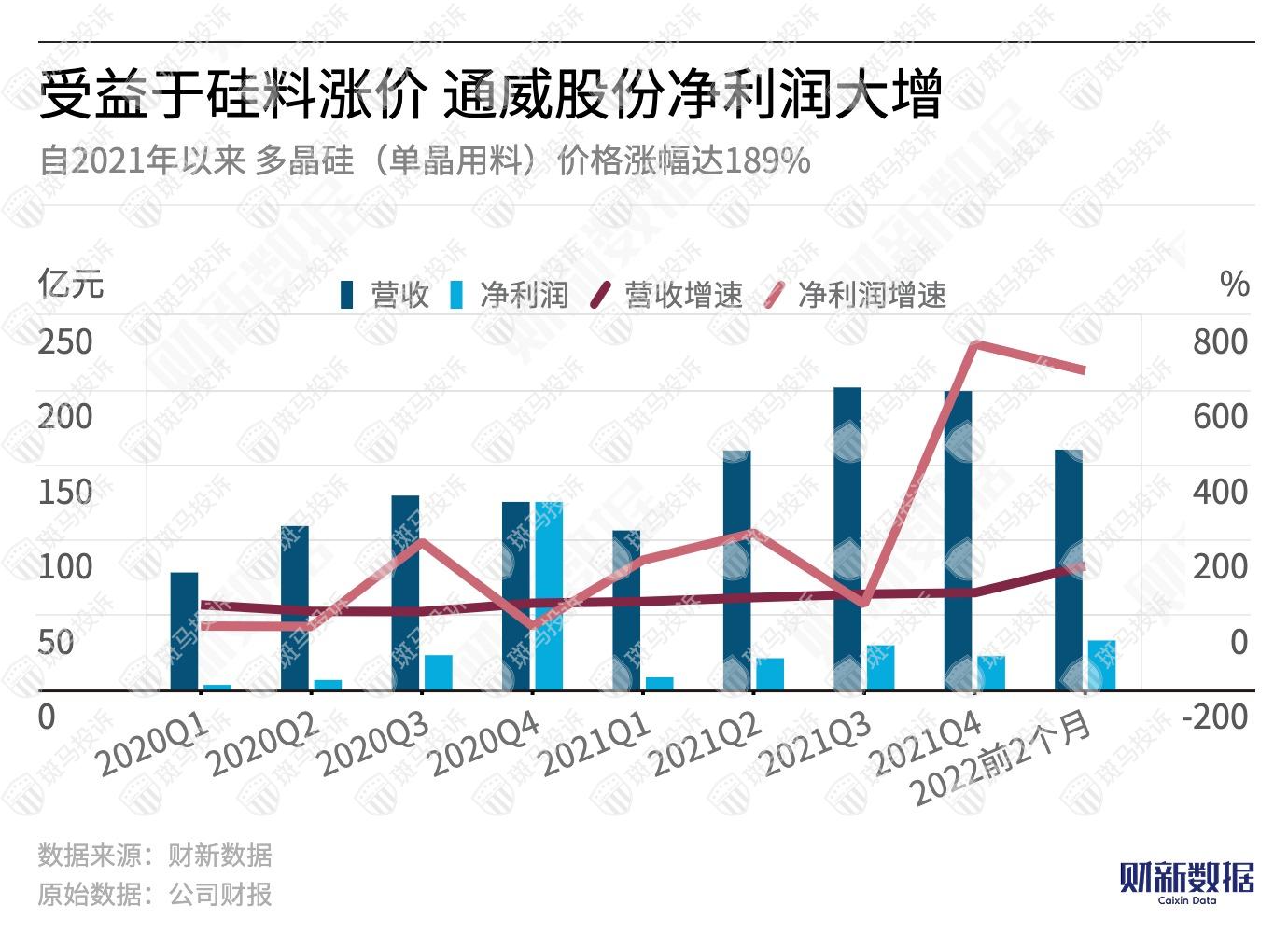 而在今年3月,通威股份与隆基绿能(64.150,-0.22,-0.34%)签订的20.36万吨、为期2年的硅料供应合同,金额预估高达442亿元。