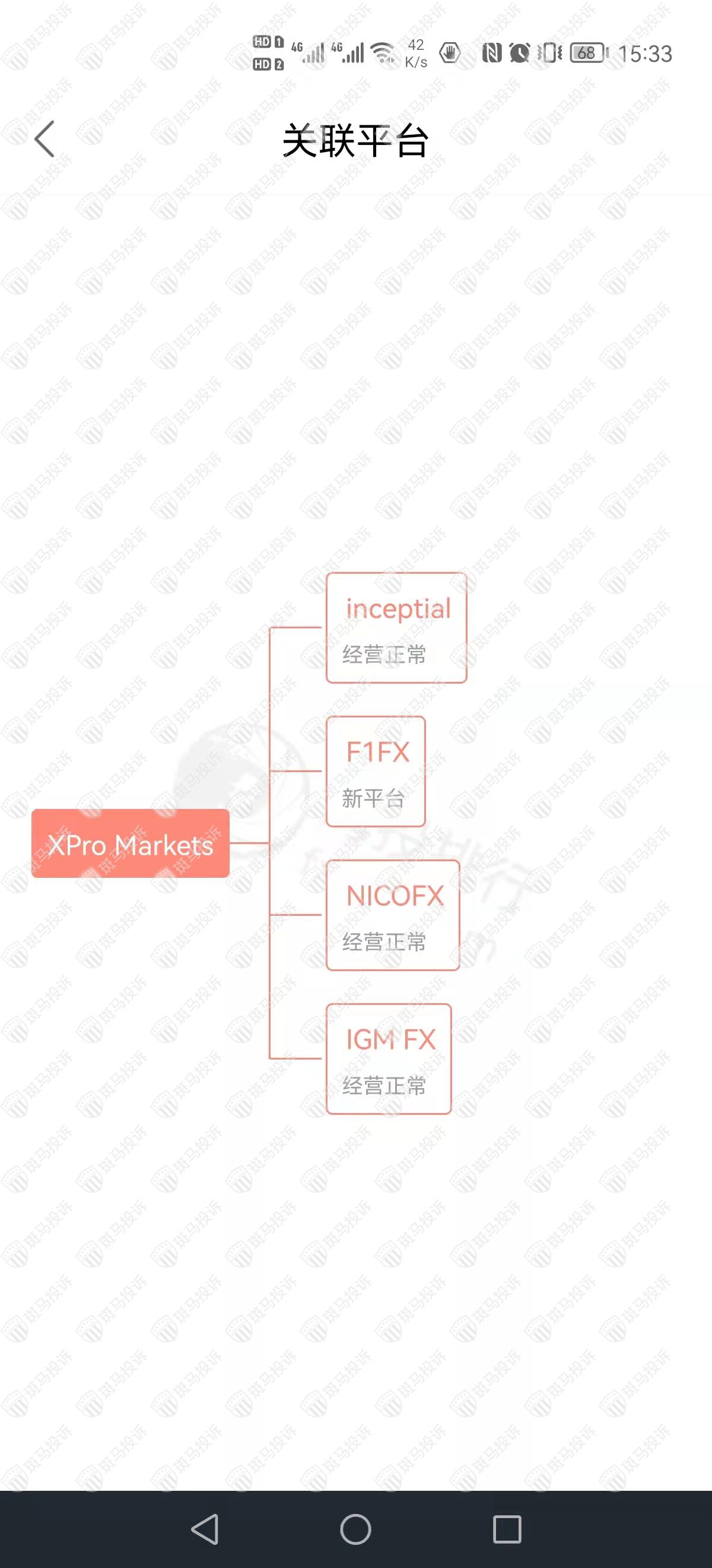 主白标关系显示,XPro Markets平台和4家平台存在关联。